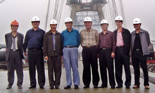 10月8日,在局長梁卓仁的陪同下,中交集團公司副董事長陳永寬(左四)視察我局BOT項目湘潭四橋,對項目建設所取得的成績表示肯定。