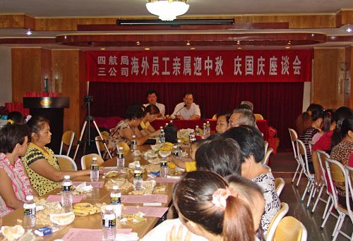 一公司、二公司、三公司在國(guó)慶前后舉辦海外項(xiàng)目職工家屬座談會(huì),送上慰問(wèn)品和慰問(wèn)金,為海外項(xiàng)目職工家屬排憂(yōu)解難,并通過(guò)手機(jī)對(duì)有通訊條件的海外施工職工發(fā)送慰問(wèn)短訊。三公司讓每位員工家屬在攝像機(jī)前給海外親人說(shuō)幾句祝賀語(yǔ),將座談會(huì)攝像制成光碟,寄往海外。