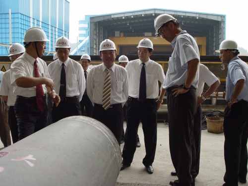 我公司新會生產基地是我公司2004年9月購置的,位于新會區古井鎮崖門水道東側,面積約 34萬平方米,規劃建設PHC大型管樁廠、大型構件預制廠、兩萬噸級船舶修造廠和船舶基地。PHC大型管樁廠已在今年初建成投產,其地項目的建設已全面開工。