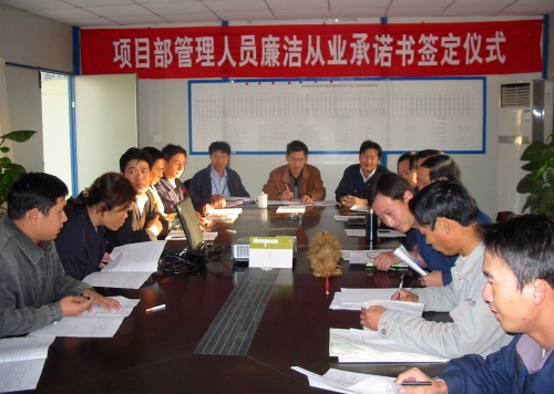 為了加強廉潔建設,規范工程建設項目甲、乙雙方的各項活動,保護甲、乙雙方的合法權益,最近,三公司鎮江項目部分別與分包單位、全體管理人員簽定了《工程建設項目廉潔從業責任書》和《企業管理人員廉潔從業承諾書》。 (潘壽海 司徒健民)