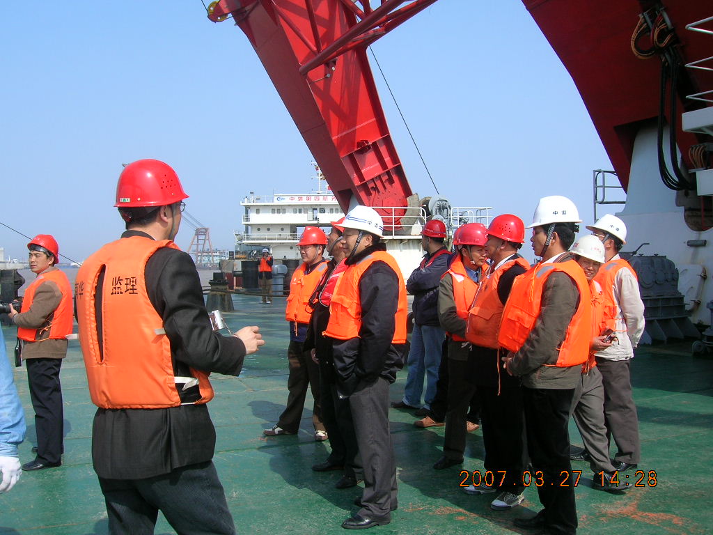 2007年3月27日下午,寧波金塘大橋項目工程指揮部由總指揮王助理和安監處楊處長帶隊,組織所有參加金塘大橋建設的同仁單位團隊到我局"四航奮進"船上現場參觀學習。