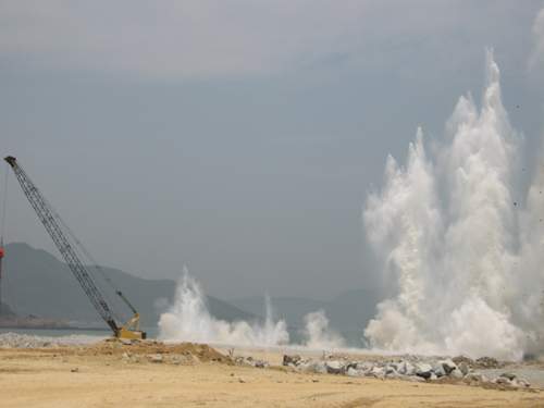 4月13日下午,寧德核電一期海域東護岸回填區新一次爆破開始,標志著寧德核電項目正式進入主體施工階段。自3月14日第一次爆破擠淤填石以來,經過一個月的努力, 0+000~0+090段(以F點為0點)已先抵達東護岸主體施工區,截至4月13日東護岸回填區共處理爆填方量約40萬方。(張寶)