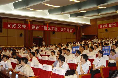 5月15日上午,四航廣明公司召開廣明高速公路建設勞動競賽動員大會,四航局董事長梁卓仁、佛山市高明區區長潘志文出席大會并講話。公路沿線各村鎮代表、相關單位負責人和全線施工承包商表,共 300 多人出席了會議。
