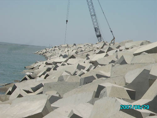 寧德核電區(qū)域天氣反復(fù)無(wú)常,加之臨海及海上作業(yè),潮位落差大,漲潮退潮快,再加上受供料方等多方面因素影響,施工一再推遲。為順利完成"6﹒30"防臺(tái)節(jié)點(diǎn)工期,專門召開(kāi)趕工動(dòng)員大會(huì),制定周密詳盡的趕工計(jì)劃和工期倒排計(jì)劃,全體員工發(fā)揚(yáng)敢打硬仗的作風(fēng),晝夜三班作業(yè)。挖機(jī)司機(jī)凌晨三點(diǎn)多就要趕到護(hù)岸理坡。工期緊,交叉作業(yè)多,水下擠淤爆破和挖泥、水上拋填各種規(guī)格的石料、護(hù)岸安裝扭王塊和推填理坡等同時(shí)進(jìn)行,項(xiàng)目部全方位加強(qiáng)施工現(xiàn)場(chǎng)安全監(jiān)控,確保了趕工期間萬(wàn)無(wú)一失。