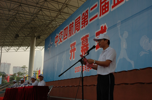 四航局工會主席肖干生主持開幕式,在運動員代表隊入場和升旗儀式后,四航局總經理孫國強致辭。他介紹了四航局今年經營生產的喜人形勢,強調建設企業文化的重要意義,高度評價了舉辦企業文化節對構建和諧四航、推動又好又快發展的重要作用。董事長、黨委書記梁卓仁宣布四航局第二屆企業文化節正式開幕。在歡樂明快的樂曲中,四航局領導和所有運動員手拉著手,跳起了集體舞。開幕式還進行了體現力量、活力、團隊精神的拔河比賽和趣味體育比賽。