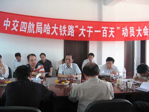指揮長羅寬榮作了動員報告。羅指揮長強調指出:廣大參戰人員充分認識哈大客運專線項目的重要性、緊迫性、艱巨性。哈大項目是中交成立以來乃至原港灣和路橋有史以來承攬的最大的項目,是鐵道部希望中交成為鐵路建設主力軍的具體體現,對中交實施鐵路戰略具有重大意義。哈大鐵路設計時速350公里,要求精度非常高,而工期非常緊,有效施工時間短,施工難度大,標準高,利潤空間小,增加了實施項目的難度。這場仗只能打勝不能打敗。要利用今年冬凍前短短的寶貴時間,與時間賽跑,要在中交全線工程建設中爭創第一,展示四航形象。每一位員工要為能參加這場大會戰感到無上光榮和倍加珍惜學習提高的機會,要通過項目為四航局培養一批人才。