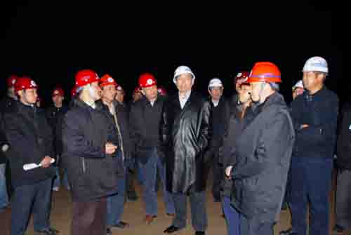 10月30日,中交股份總裁孟鳳朝、總工程師林鳴、基建部總經理唐永勝、中交哈大副指揮長、黨委副書記胡清江一行在四航局副總經理羅寬榮、周達培、一公司總經理方嘉煊等的陪同下,冒著雨雪交加、大風泥濘的惡劣天氣到四航局哈大經理部視察指導工作。