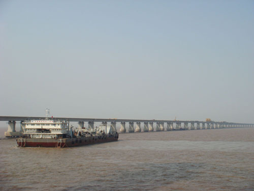 金塘大橋項目部的全體員工在認真做好防御臺風、寒潮大風的同時,抓住一切有利時機,見縫插針地組織箱梁安裝工作,在有限的施工條件下發揮最大的安裝效率,至2007年11月8日止,共已完成箱梁安裝245片,占需安裝箱梁總數470片的52%。