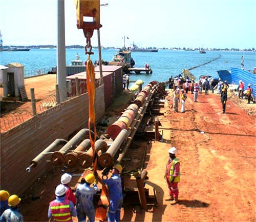 羅安達油碼頭工程海底管線成功下水