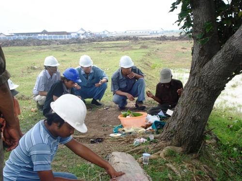 印尼INDRAMAYU3*300MW燃煤電站碼頭水工工程項目于2007年12月底開始籌建,在項目部積極準備和公司各部門的積極配合下人員迅速到位,項目部在解決現場住房交通運輸及勞務分包等問題后,該工程臨建設施及預制場建設于2008年1月30日上午11:30正式開工。總包中電工現場經理賈經理及水工聯系人白工一行到場參加了開工儀式。