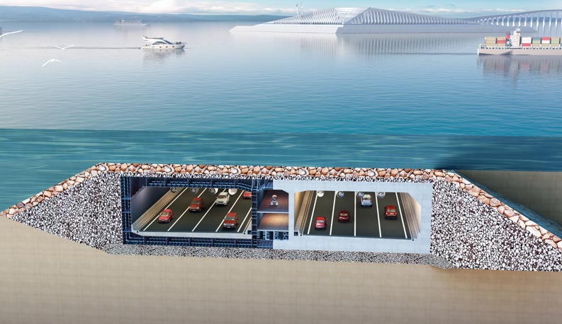 深中通道地處珠江中游核心區域,直接連接深圳經濟特區與中山市、江門市,是世界級的集橋梁、隧道、人工島和地下互通于一體的超大型跨江集群工程,主體工程全長約24千米,沉管隧道段全長6845米,采用雙向8車道,設計時速100km。其中,預制沉管段長5035米,由32節管節和1個最終接頭組成。
