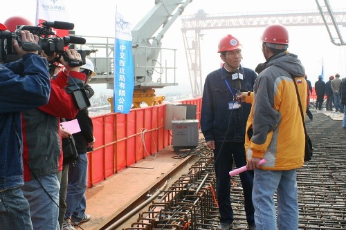 3月30日, 青島海灣大橋工程首件60米箱梁在該項目部預制場澆注成功,標志著青島海灣大橋主體工程正式進入施工階段。