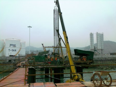 4月13日,福建泰山石化10萬噸級碼頭工程首根灌注樁順利澆注成功,為灌注樁施工全面展開起了一個好頭,更為下道工序現澆墩臺施工打下良好的基礎。