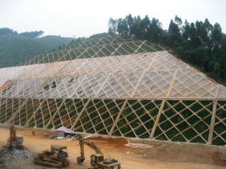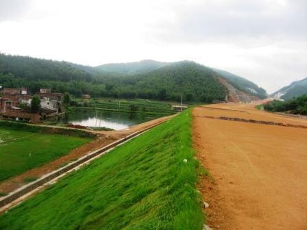 在邊坡防護中,善于根據季節、天氣變化,靈活安排時間,搶抓進度,促進綠色植物生長。特別是針對路基邊坡開挖后的地質與原設計有所不同、原設計的綠化方案不夠"綠色"的實際情況,廣明二段多次組織召開會議,邀請有關專家和綠化隊伍進行研究、商討,改進施工方案。
