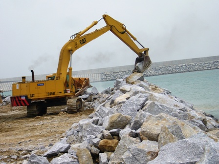 陽(yáng)江核電項(xiàng)目部歷來(lái)重視三防工作,積累了有效的防臺(tái)經(jīng)驗(yàn),每年都及早編制出三防預(yù)案,并及時(shí)組織全體員工學(xué)習(xí)掌握三防預(yù)案。當(dāng)"浣熊" 向陽(yáng)江移動(dòng)時(shí),項(xiàng)目經(jīng)理主持召開(kāi)防臺(tái)會(huì)議,安排各項(xiàng)防臺(tái)應(yīng)急措施。隨后各水上作業(yè)施工船舶馬上拖航到臺(tái)山鎮(zhèn)海灣防臺(tái)錨地;現(xiàn)場(chǎng)高處作業(yè)、水上作業(yè)全部停止;取水口防波堤停止推填,采用500~800kg塊石壓頂和側(cè)面拋填加固;預(yù)制場(chǎng)電箱全部斷電并做好防雨措施,為兩臺(tái)攪拌站的全部水泥罐拉設(shè)防風(fēng)纜;全部機(jī)械設(shè)備進(jìn)入預(yù)定防臺(tái)位置并做好防雨措施;現(xiàn)場(chǎng)宣傳標(biāo)語(yǔ)牌能拆除的全部拆除;清點(diǎn)主要作業(yè)點(diǎn)的人員;完成生活區(qū)內(nèi)燃油、食品、飲用水等的儲(chǔ)備。