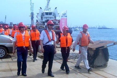 孟總裁一行與安哥拉國家石油公司Sonan;l董事長維森特先生以及Sonan;l董事會成員進行了親切會談。孟總裁一行還仔細察看了我公司負責施工的重力式碼頭、油碼頭及上海航道局負責施工的疏浚吹填項目施工現場,慰問了正在安哥拉參加工程建設的集團屬下各子公司的員工,對各方取得的成績表示祝賀。 員工們也表示,孟總裁一行的到來,極大鼓舞了士氣,今后將繼續加倍努力,打好CCCC、CHEC品牌,為中交集團、中國港灣的發展貢獻力量。
