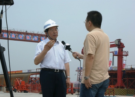 當天,周董事長還在該項目部制梁場接受了中央電視臺"焦點訪談"欄目記者的現場采訪。