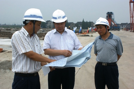 周董事長一行詳細詢問了京滬高鐵工程的技術特點以及四航局承建的六標段七工區的進度、質量、成本及員工隊伍等情況,對四航局進場5個多月以來在克服征遷、見縫插針加快施工進度、高標準控制工程質量、標準化推行中交VI視覺識別形象等方面給予了充分肯定。