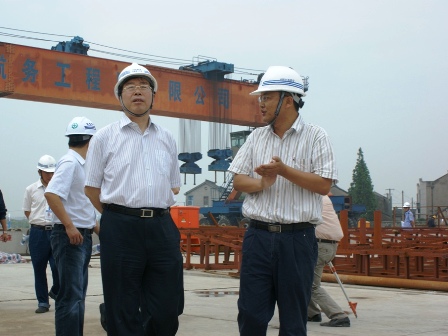 7月1日,在建黨87周年之際,中交股份有限公司董事長周紀昌一行冒酷暑視察了正在緊張施工的四航局京滬高鐵工地。