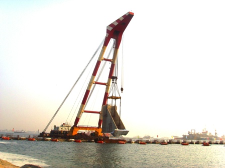 同時(shí),正在緊張施工的船塢工程挖泥、拋石、打夯均已完成,水下整平已完90%,扶壁預(yù)制20件,已完63%,扶壁安裝17件,回填砂已完50%,沉樁80根,完成50%;工作車間樁基已全部完成,面板已完成70%;主碼頭延長(zhǎng)段的挖泥已完成3500方。