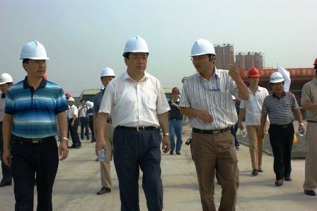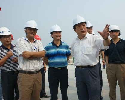 8月13日,原鐵道部副部長、現任京滬高鐵有限公司董事長蔡慶華在中交京滬高鐵項目部副總經理王建一行的陪同下視察了四航局上海嘉定制梁場。