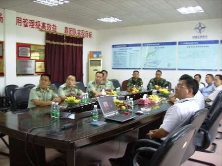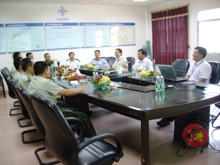 陳常源政委一行聽取了四航局在鹽田港區所承建各期工程的介紹,對項目部為業主和社會做出的優秀成績表示稱贊和敬佩,對項目部給予六支隊邊防執勤、維持邊防穩定等相關工作的支持表示感謝。