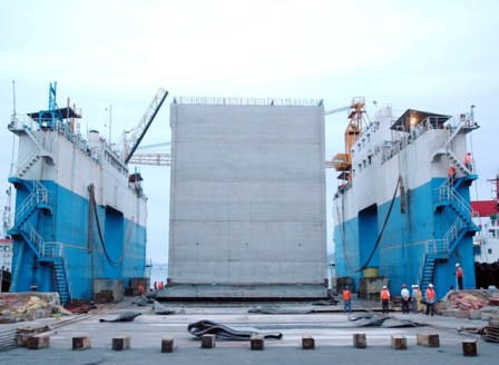 鹽田港區(qū)合同二C工程大型沉箱出運(yùn)安裝完成
