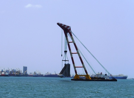 羅安達重力式碼頭延長段首塊大型扶壁順利安裝