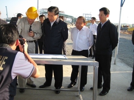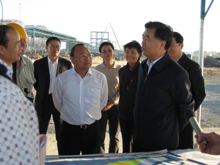 在施工現(xiàn)場平臺上,省委書記汪洋聽取了湛江市領(lǐng)導(dǎo)及湛江龍騰物流有限公司介紹施工現(xiàn)場情況與發(fā)展規(guī)劃,觀看三公司湛江項(xiàng)目部碼頭施工現(xiàn)場熱火朝天的趕工情景。