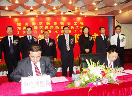 11月13日,湛江港霞山港區大型散貨碼頭工程、東海島港區通用雜貨碼頭工程、調順港區300號泊位技改工程開工簽字儀式在湛江港海港大廈順利舉行,廣東省經貿委主任楊建初,湛江市領導陳耀光、嚴植嬋、王中丙、鄧振新等出席了簽字儀式。四航局董事長梁卓仁代表施工單位在儀式上發表講話并與湛江港集團董事長鄭日強簽署了湛江港300號碼頭技術改造工程合同。