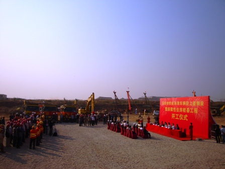 11月20日,深圳地鐵前海灣車輛段上蓋物業暨保障性住房樁基工程舉行開工儀式。深圳市國土資源和房產管理局謝婉華處長、深圳市地鐵公司綜合開發部部長以及業主、設計、監理各方代表出席了儀式。