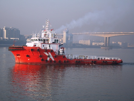 該船總長58.7米,型寬14.6米,型深5.5米,總噸1537噸,系柱拖力65噸;航行無限航區,是用于海上石油平臺的拖帶,錨碇作業,消防,安全救助等多用途工作船;入級法國船級社(BV)。