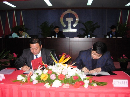 12月23日上午9時,貴廣鐵路施工單位合同簽字儀式隆重舉行,鐵道部貴廣鐵路公司籌備組常務副組長王同軍,業主、施工單位代表四航局董事長梁卓仁分別在GGTJ~13標合同上簽字。