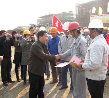 元月14日上午,欽州市常務(wù)副市長(zhǎng)黃洲一行9人組成的慰問(wèn)團(tuán)到三公司欽州港項(xiàng)目部慰問(wèn),并送來(lái)5000元慰問(wèn)金。黃副市長(zhǎng)對(duì)碼頭當(dāng)前工程進(jìn)度以及質(zhì)量、安全等方面均表示滿意,同時(shí)要求項(xiàng)目部全體員工再接再勵(lì),確保今年底欽州港保稅區(qū)封關(guān)開(kāi)港作出新的貢獻(xiàn)。