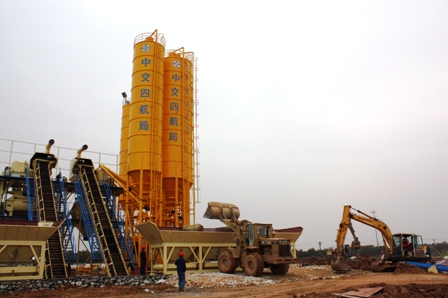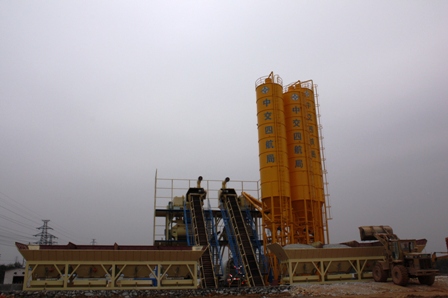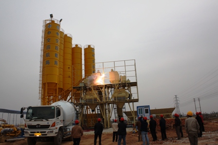 1月23日下午二時整,隨著一陣響亮的鞭炮聲,貴廣鐵路工程二項目部線路攪拌站第一臺攪拌機組投入使用,二公司總工程師王定武親臨施工現場指導。