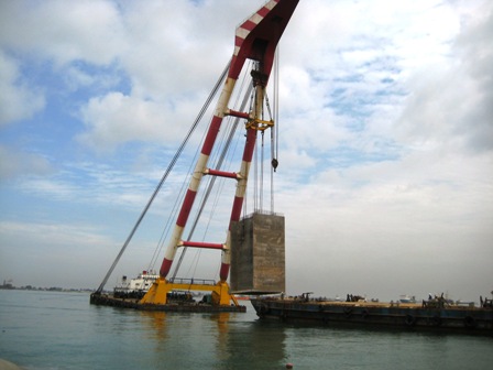 2月1日,羅安達項目部船塢工程最后一件沉箱順利安裝下水,標志著船塢項目水上構件安裝基本完成,為后續回填砂施工奠定了基礎,同時也為延長段項目連接船塢上部結構的施工創造了有利條件。
