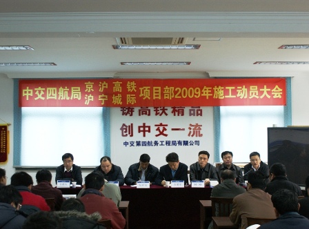 2月26日上午,二公司京滬高鐵項目部召開2009年度施工動員大會。四航局黨委副書記阮祥發、中交京滬項目部總工安愛軍、副總經理顧剛及參建架子隊代表參加了會議。