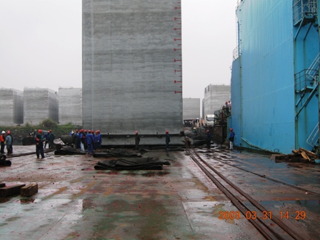 海口港馬村港區擴建一期工程沉箱預制件共75件,第一批沉箱預制工作自從2008年5月23日開始,目前已經完成四條生產線共45件沉箱的預制任務,2009年3月10日開始沉箱出運準備工作,并于3月26日開始第二批沉箱的預制。目前,第二批沉箱工作和沉箱出運工作正有條不紊地 。
