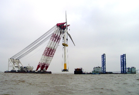 四航奮進號安裝我國首個海上風力發電場風機