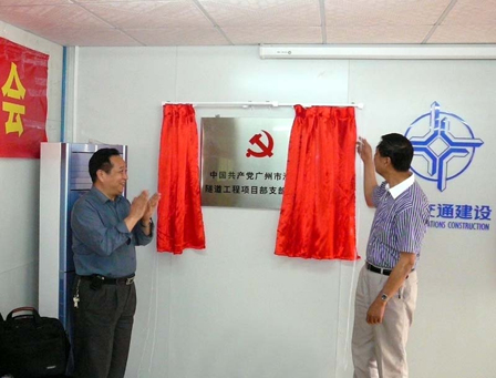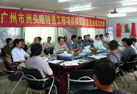 4月16日上午,廣州市中心區交通項目辦在洲頭咀隧道工程二標段召開了洲頭咀隧道工程項目部臨時黨支部成立大會,交通項目辦黨委副書記、紀委書記謝魁云主持會議并通過了黨支部工作細則及2009年度工作計劃。項目辦黨委書記、主任杜全喜、副主任蔡勝、總工程師薩兆照、總經濟師邵云等辦領導及廣州市市政工程安全質量監督站王大通站長出席了大會。洲頭咀隧道參建單位中交四航局、廣州市政集團總公司、廣州市政監理有限公司、廣州市穗高監理有限公司的有關黨政領導出席了會議。四航局黨委副書記阮祥發、二公司黨委書記萬軍杰參加會議。