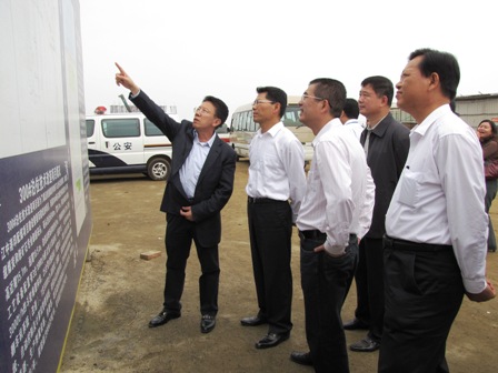 4月13日,湛江市常務副市長王中丙一行在湛江港(集團)董事長鄭日強的陪同下,到湛江港項目部寶滿工地視察工作。