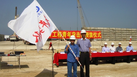 4月26日,阮祥發(fā)副書記一行到沙特吉達港RSGT項目,深入到岸上施工一線和數(shù)十公里外戈壁沙漠中的采石場了解項目組織實施情況,并參加了項目部創(chuàng)建青年文明號的"青年突擊隊"授旗儀式,親自為項目部青年突擊隊授旗。在吉達港,針對項目部所處的穆斯林宗教特殊環(huán)境和項目部員工生活相對比較枯燥單調的情況,阮祥發(fā)除了與員工談心,和班子座談,和員工共用工作餐外,還登上起九船組和方駁8401,看望慰問船員,與船員座談和共進午餐,了解船員心聲,大大鼓舞了項目部員工士氣。