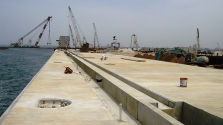 4月21日上午,阮祥發(fā)副書記在斯里蘭卡首都科倫坡會訪了中港駐斯里蘭卡辦事處負責人唐橋梁,了解了中港在當?shù)氐氖袌鲩_拓情況以及漢班托塔項目運行情況。當天下午,阮祥發(fā)一行又趕到數(shù)百公里之外的漢班托塔,深入一線察看指導工作。在深入攪拌站、機械維修車間、采石場,東西防波堤、扭王字塊預制場、港池圍堰、基坑開挖、工作船碼頭等施工現(xiàn)場了解工程實施情況及察看項目部及分包隊伍營區(qū)和看望現(xiàn)場管理人員和施工人員后,阮祥發(fā)副書記充分肯定了營區(qū)環(huán)境的優(yōu)美整潔、現(xiàn)場施工規(guī)模的壯觀和項目員工良好的精神面貌,他稱贊"項目部花園式的營區(qū)建設在四航局海外項目首屈一指,為員工提供了優(yōu)美舒適的生活和工作環(huán)境",并對項目部的海外項目文化建設作出了具體指導。