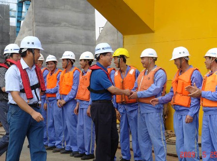 陳玉勝一行詳細了解了項目部生產、生活情況和四航局在安哥拉的水上船舶情況。他對四航局開創羅安達市場,高效優質地完成了多個港口泊位,在當地政府樹立了良好的形象給予了高度評價,希望項目部在與中港安辦的合作下,繼續搞好在建項目,進一步開拓市場,并與中國路橋安辦多溝通,互通往來。
