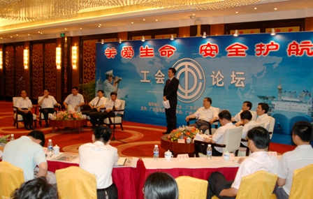 5月26日,由廣東省總工會、省安全生產監督管理局、省海員工會聯合主辦的"關愛生命,安全護航"工會論壇活動在廣州遠洋賓館舉行,省海員系統企事業單位負責安全生產的行政負責人、工會主席等約100人參加了論壇會。省總工會副主席張國興,省總黨組成員、紀檢組長肖建葵到會講話。