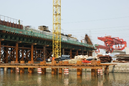 此階段架橋過程中,京滬高鐵上海嘉定制梁場克服種種困難,通過改進工藝,加強管理,大幅度提高了箱梁架設工效,架梁過程中曾創造單班作業歷時13個小時架設4孔900噸箱梁的佳績,為下步架梁工作順利進行打下了良好基礎。