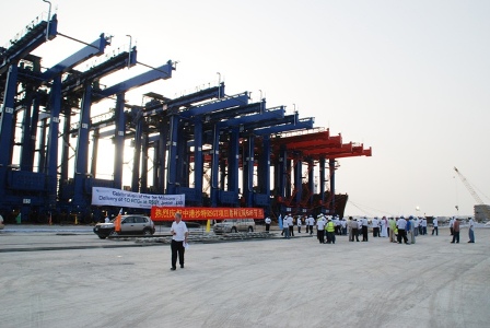 6月15日,隨著"FALCON"號船運載首批橋吊靠泊沙特RSGT碼頭并組織上岸,標志著沙特項目部勝利完成"6.16"節點,按時向業主提供了10臺橋吊上岸及存放場地條件,實現了對業主的莊嚴承諾。