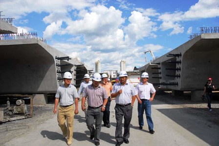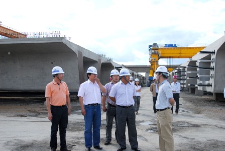 6月23日,中交股份副總裁朱碧新一行在中交哈大常務副指揮長馬新安陪同下到四航局哈大項目指導工作。