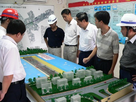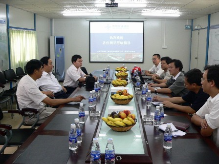 6月25日下午,中交集團學習實踐科學發展觀活動巡回指導檢查組長張寧驥等一行,在四航局黨委副書記阮祥發的陪同下,蒞臨洲頭咀項目部,檢查基層黨支部貫徹中交集團開展深入學習科學發展觀活動方案的情況。
