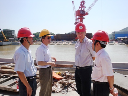 7月10日上午,廣東省交通廳港口航道局局長(zhǎng)鄧立文、江門交通局局長(zhǎng)肖繼明和新會(huì)區(qū)相關(guān)主管部門領(lǐng)導(dǎo)在四航局副總經(jīng)理方丘洚陪同下,到新會(huì)基地建設(shè)現(xiàn)場(chǎng)進(jìn)行檢查并指導(dǎo)工作。